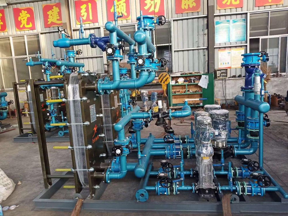 我公司生產(chǎn)的機(jī)組由板式換熱器、循環(huán)水泵、補(bǔ)水泵、除污器、配電箱(柜)及各種儀表、管件、閥門等附件組成。用戶只需要連接一次熱源、 二次水(采暖供熱或生活用水)系統(tǒng)及補(bǔ)水系統(tǒng),接通電源,即可使用。它具有安裝簡便快捷、占地面積小、運(yùn)行可靠、檢修保養(yǎng)方便等優(yōu)點(diǎn),是一種高效節(jié)能設(shè)備。